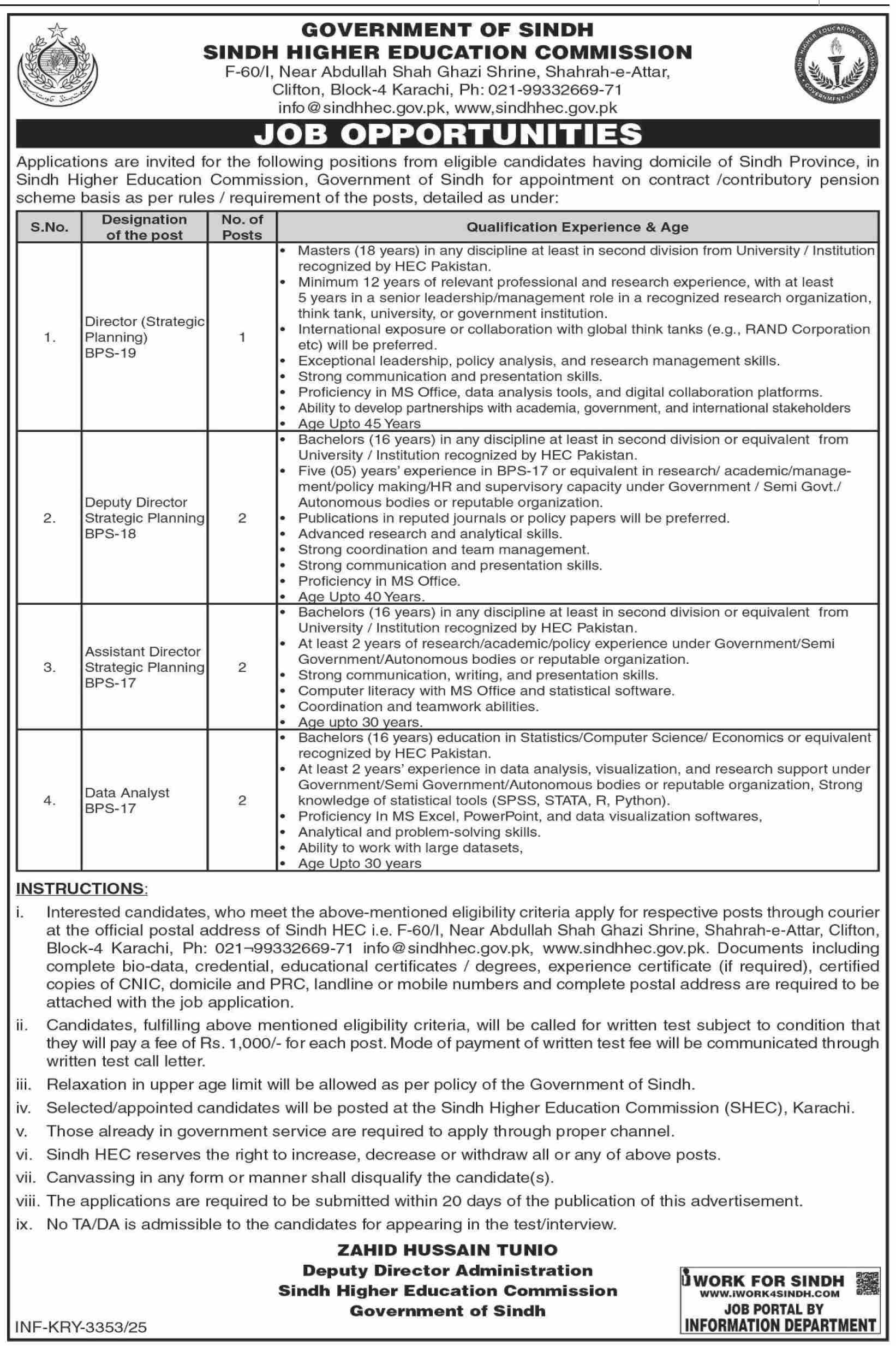 | Advertisement Title | Sindh Higher Education Commission Vacancies Announcement October 2025 Advertisement |